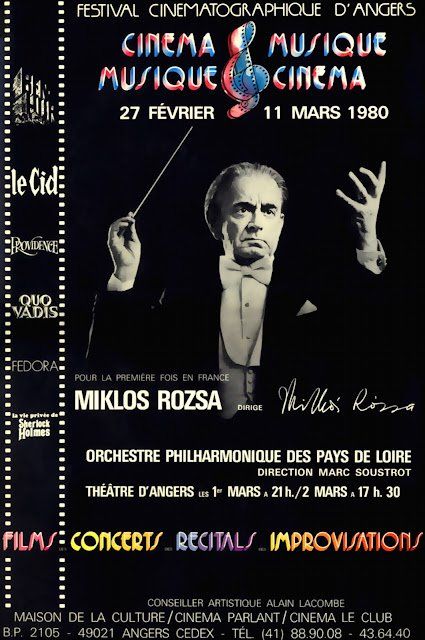 En mars 1980, Alain Lacombe et la ville d'Angers ont invité Miklós Rózsa, en tant qu'invité d'honneur, à donner deux concerts à l'occasion de leur festival annuel du film. Le compositeur légendaire avait 73 ans et c'étaient ses seuls concerts en France depuis ceux qu'il avait donnés avec Arthur Honneger dans les années 30. Pour l'ouverture du Festival, une master class avec le compositeur a été organisée après la projection du film SPELLBOUND (1945) d'Alfred Hitchcock. Durant le festival, le très sympathique gentleman compositeur a répondu à toutes les questions des journalistes ou des simples fans, qui ont tous confirmé que Miklós Rózsa était un homme élégant et qu'il parlait un bon français avec un accent très charmant.