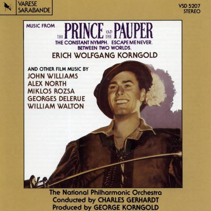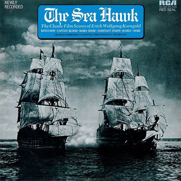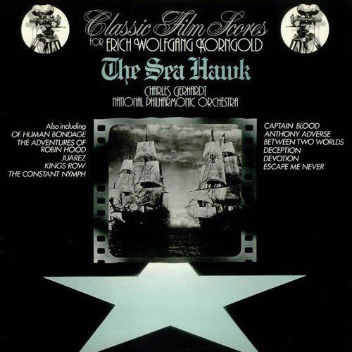 THE SEA HAWK: THE CLASSIC FILM SCORES OF ERICH WOLFGANG KORNGOLD. Pour ce premier disque, Gerhardt sélectionne 10 scores de Korngold qu’il enregistre dans le Studio de Kingsway Hall à Londres, réputé pour son étonnante acoustique. Le disque profite ainsi des conditions d’enregistrement optimales, favorisant par la même occasion, les performances du National Philharmonic (et de son super leader, Sidney Sax), formidable orchestre composé des meilleurs musiciens de Londres et de solistes freelance. Chaque album fut enregistré dans le même studio avec Kenneth Wilkinson comme ingénieur du son et George Korngold comme conseiller/producteur.