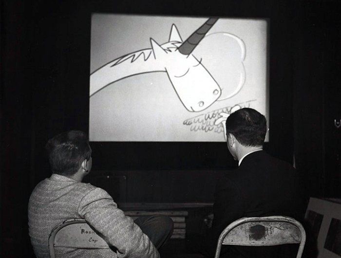 James Thurber’s modern fable The Unicorn in the Garden first appeared in the New Yorker on October 31, 1939. David Raksin composed a charming score for chamber orchestra and recorder for the 1953 United Productions of America film. The studio elected to recreate Thurber’s original illustration style. The Unicorn in the Garden has sparse dialogue, because Raksin tells the story with the sounds. Raksin’s score calls for a recorder to be the thematic voice for the silent unicorn. Members of the animation field voted The Unicorn in the Garden one of the fifty greatest cartoons of all time.