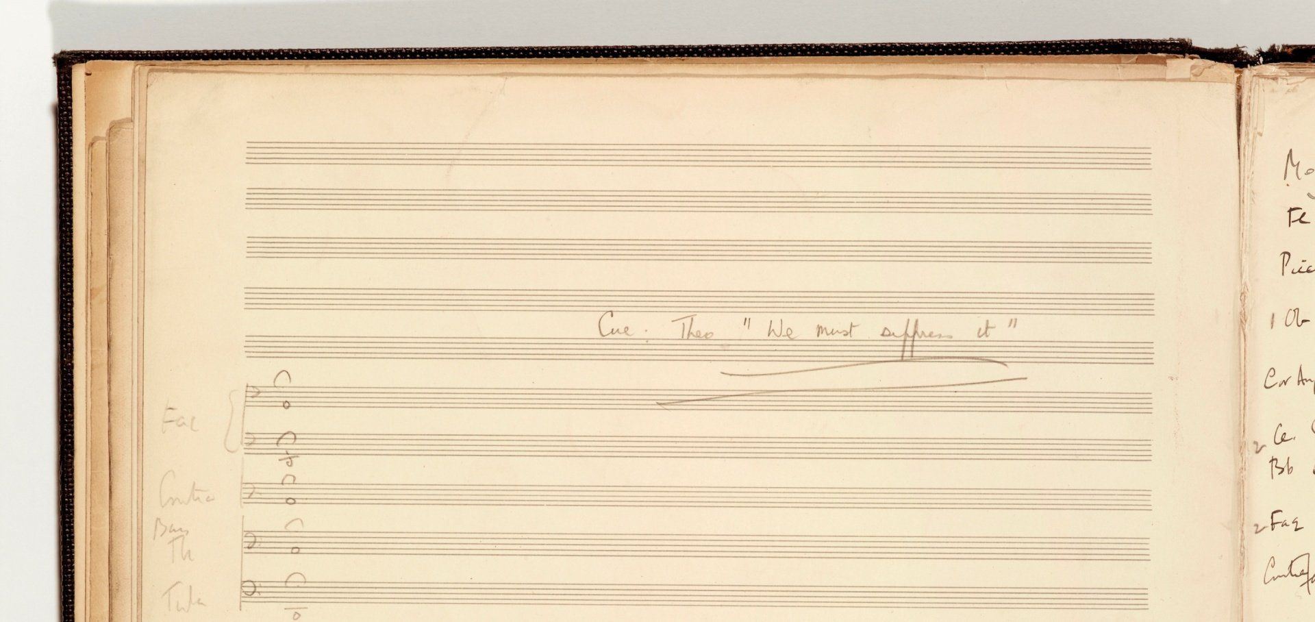 A curious detail worth mentioning here is that on the inside cover of the surviving manuscript there is a prompt in pencil which reads quote “Cue: Theo ‘We must suppress it’”.
